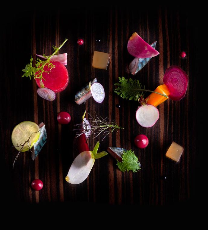 cuisiné par nos soins, que j’ai voulu surprenant, exigeant et audacieux. Une nouvelle étape pour l’établissement, un vent de liberté et de créativité supplémentaire en cuisine, la surprise de la dégustation pour vous, fidèles de la maison ou nouveaux gourmets.